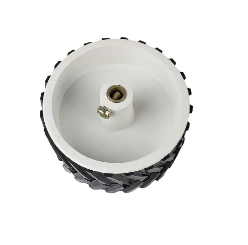 This is a Heavy-Duty Rover wheel for Off-road mid sized Robots, it has a size of (7 x 4) cm - diameter x height with 6mm shaft and it is made of Hard Plastic with Rubber treads. This can be used in War Robots, fire fighting robots and Off road bots