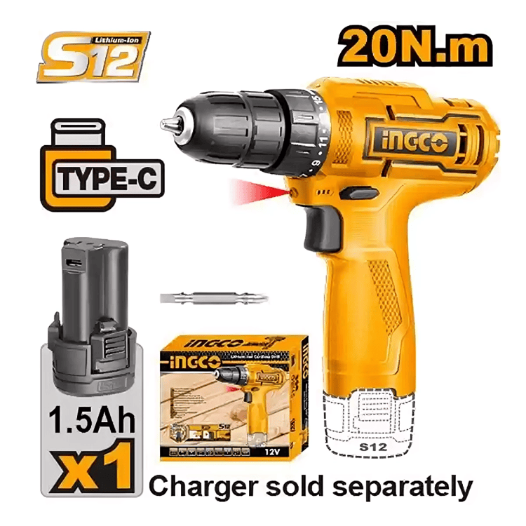 1 Γ INGCO 12V Cordless Drill (CDLI12456)